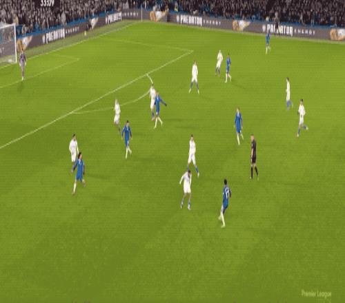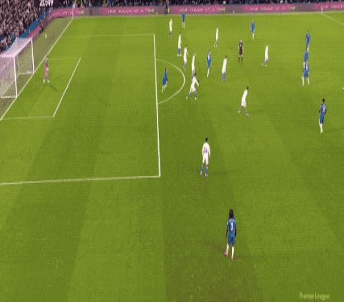 第53分钟,切尔西的传球流通丝滑,埃斯特旺脱节两人防卫起脚射门,皮球稍稍偏出。