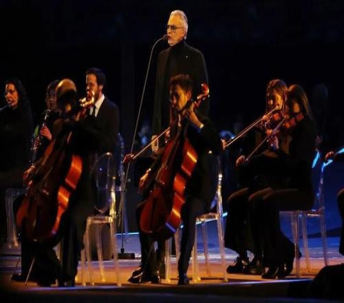 意大利瞎子歌唱家波切利带来歌剧《图兰朵》中最闻名的咏叹调《今夜无人入眠》,全场一起唱响,震撼人心。