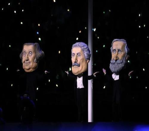威尔第、普契尼和罗西尼三位意大利歌剧大师跳起愉快的舞步。