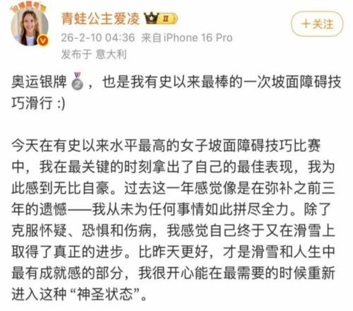 她没说惋惜没夺冠,她说:“我滑出了一辈子最好的动作,我做到了最好的自己,我觉得很自豪”;