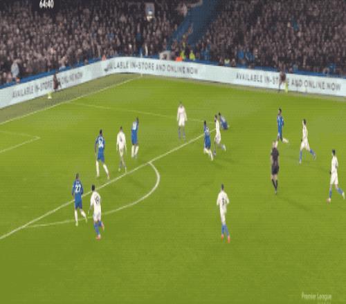 第53分钟,切尔西的传球流通丝滑,埃斯特旺脱节两人防卫起脚射门,皮球稍稍偏出。