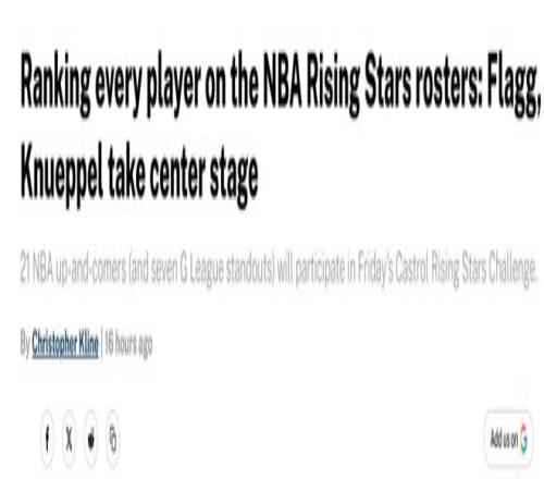 杨瀚森排在第22名!美媒《fansided》在全明星周末行将到来之际,提早发布出当选NBA新秀挑战赛的新星排名,其间克努佩尔与弗拉格两大最佳新秀抢手占有前二,火箭队谢泼德则高居第六。