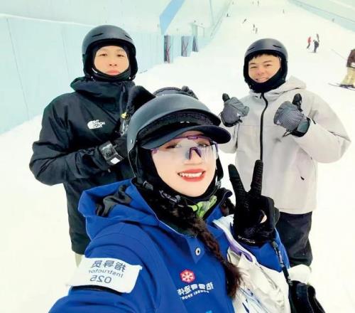 那时的她不会想到,雪场会自动南下,来到她的“家门口”。2025年,她成为深圳最大室内雪场的一名单板滑雪教练,现已有数百名来自广东、港澳台区域乃至海外的学员,在她的指导下榜初次学会推坡、转弯。